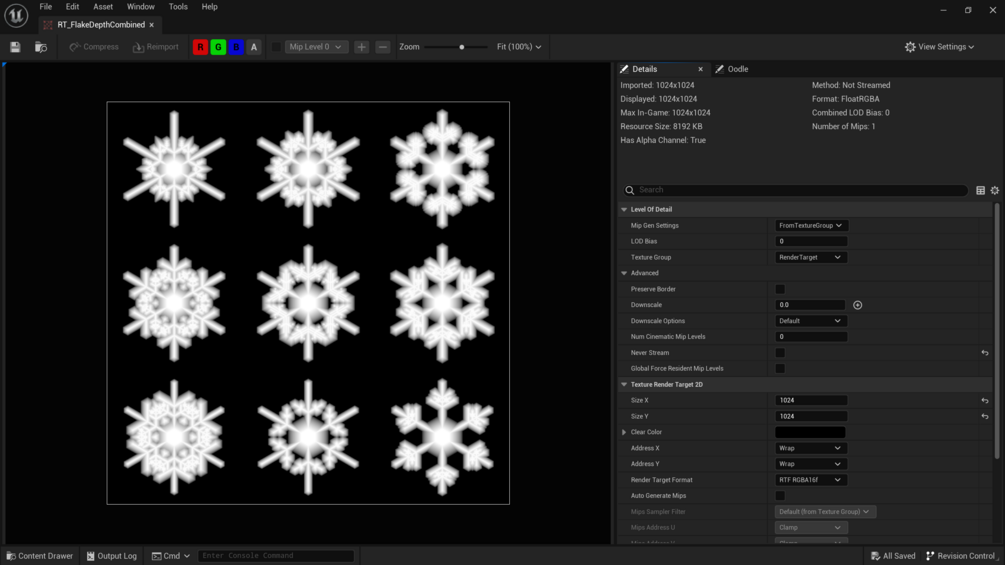 - After converting the render targets into static textures, don’t forget to set the correct parameters, including enabling streaming and mip generation.