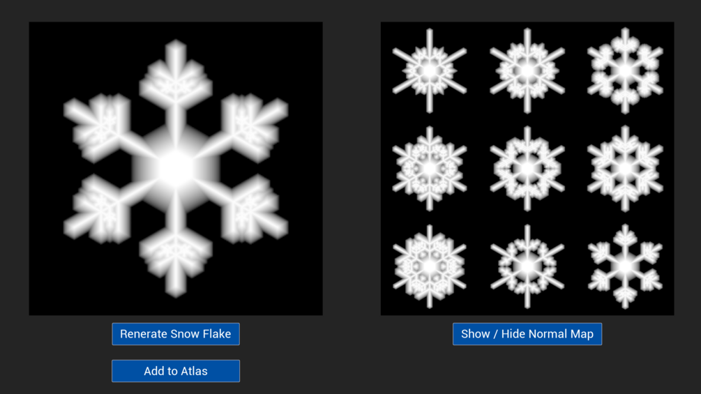 - Blueprint for procedural generation of high-quality snowflakes — individual textures and atlas maps.