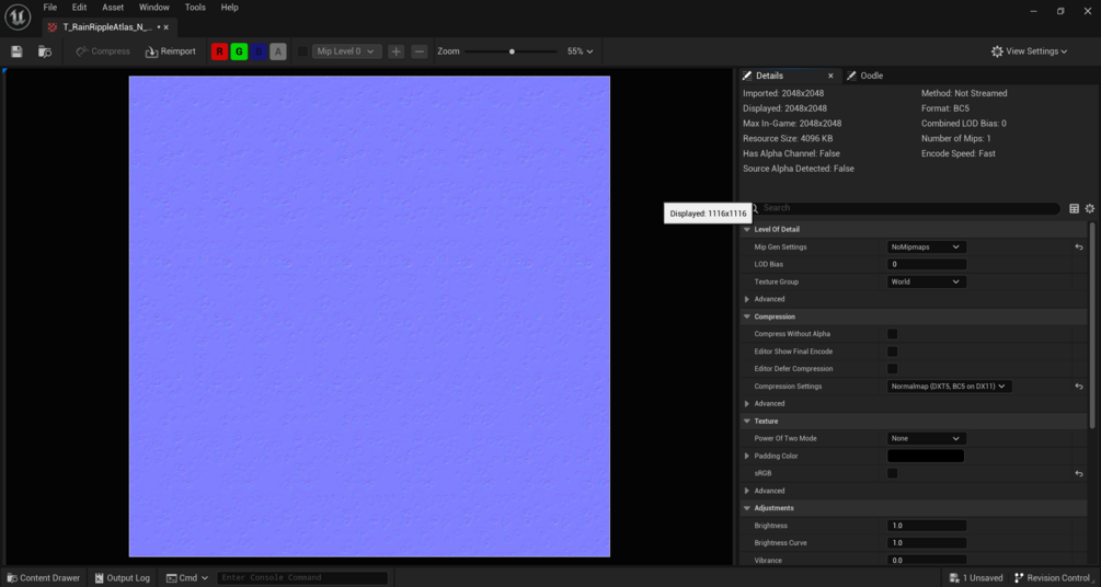 Procedural Rain Ripple Atlas generator for Unreal Engine 5 with customizable parameters.